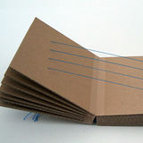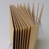 A bookwork that can be browsed page by page or looked at as a sculpture. Elastic threads take the place of printed text lines. They spiral through the book along the four edges usually formed by the text-bloc - changing direction when the spine swaps side.