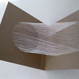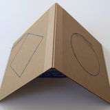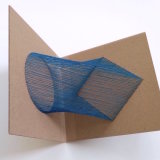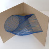 A square and a circle - both identical in size - are stitched into two pieces of cardboard. They form the jacket of a book. When opening this jacket, a threaded drawing unfolds that joins the two geometrical shapes, squaring the circle.