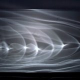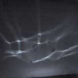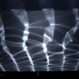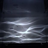 The slightest ripple on the surface of the water is projected by light onto the film sheets and gallery walls, creating large drawings in motion.