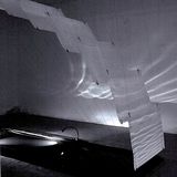 Seven film sheets form an arch between a shallow pool of water and the gallery's skylight, both 2.7m long x 70cm wide
