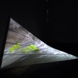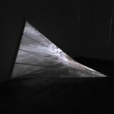 Built after an existing screen made of polyester thread this three-dimensional projection screen is made of silk, reflecting the light in a more subtle way. The screens are rigged like sails but instead of wind they work with light.
