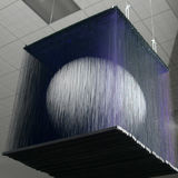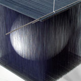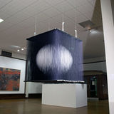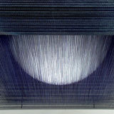 The threads form a dark cube in which a white sphere seems to be floating. It is luminous and non-transparent and looks so solid that people try to touch the mirage.